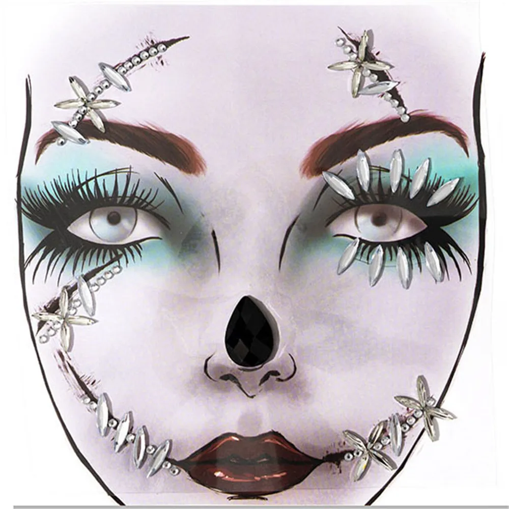1pc Face Jewelry Makeup Sticker For Carnival Halloween Festival Skull Bone Dressing With Teeth Party Night Club Makeup Body Art Temporary Tattoos Aliexpress